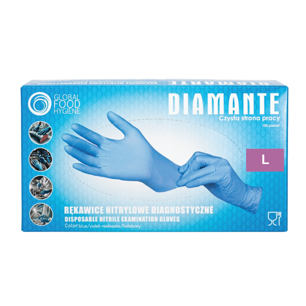 Diamante sinised nitriilkindad puudrita L(8-9) 100tk, kastis 10pk